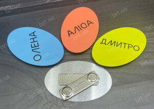 Бейджі для персонала іменні і з віконцем виготовляємо на власному виробництві в Києві. Бейджики металеві, пластикові, дерев’яні. З логотипом. На магнітах і шпильках.